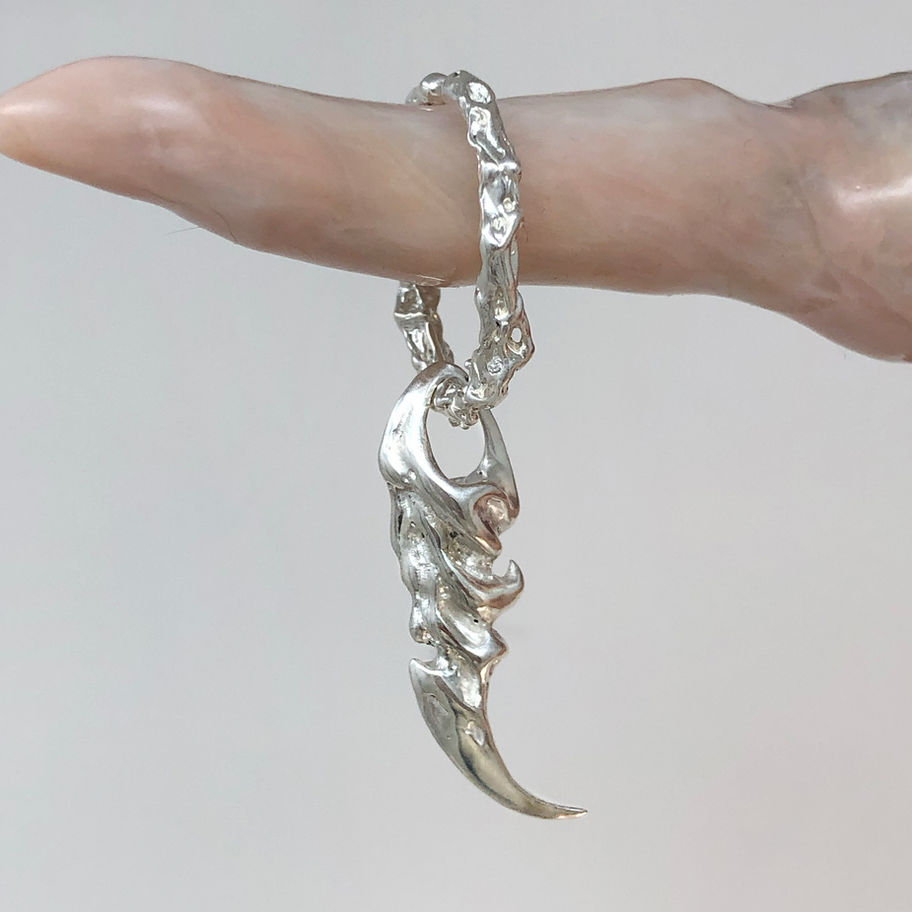 The distinctive finishing technique enhances the handmade feel with subtle traces of the artist's hand visibly present. The protruding surfaces are polished to a chrome-like sheen while the crevices retain a rugged texture. The piece continues its life on the wearer, welcoming the scuffs and natural ageing process, reflecting your personal style and story.